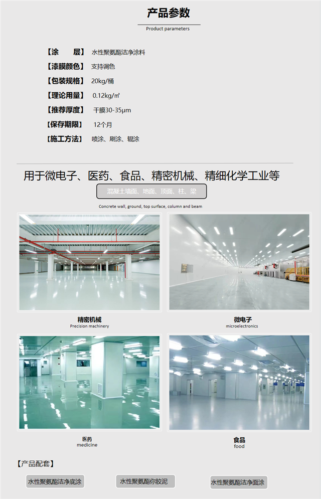 水泥砂漿、混凝土、木材等基層宜選用環保型水性聚氨酯潔凈涂料、水性環氧潔凈涂料、無溶劑環氧潔凈涂料