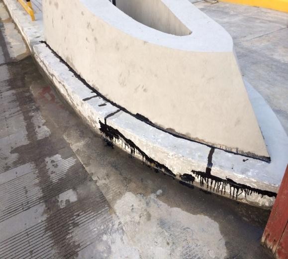 第一道工序:打磨混凝土表面,護欄表面清理干凈至新鮮混凝土面。將混凝土表面腐蝕掉的、不平整的部分打磨干凈。