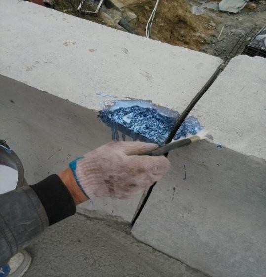 第二道工序:將局部破損較嚴重區(qū)域采用聚合物砂漿修補平整。先在大的缺陷、裂縫處涂上均勻、足夠的底涂,等其干燥之后用聚合物砂漿將其修補完整。